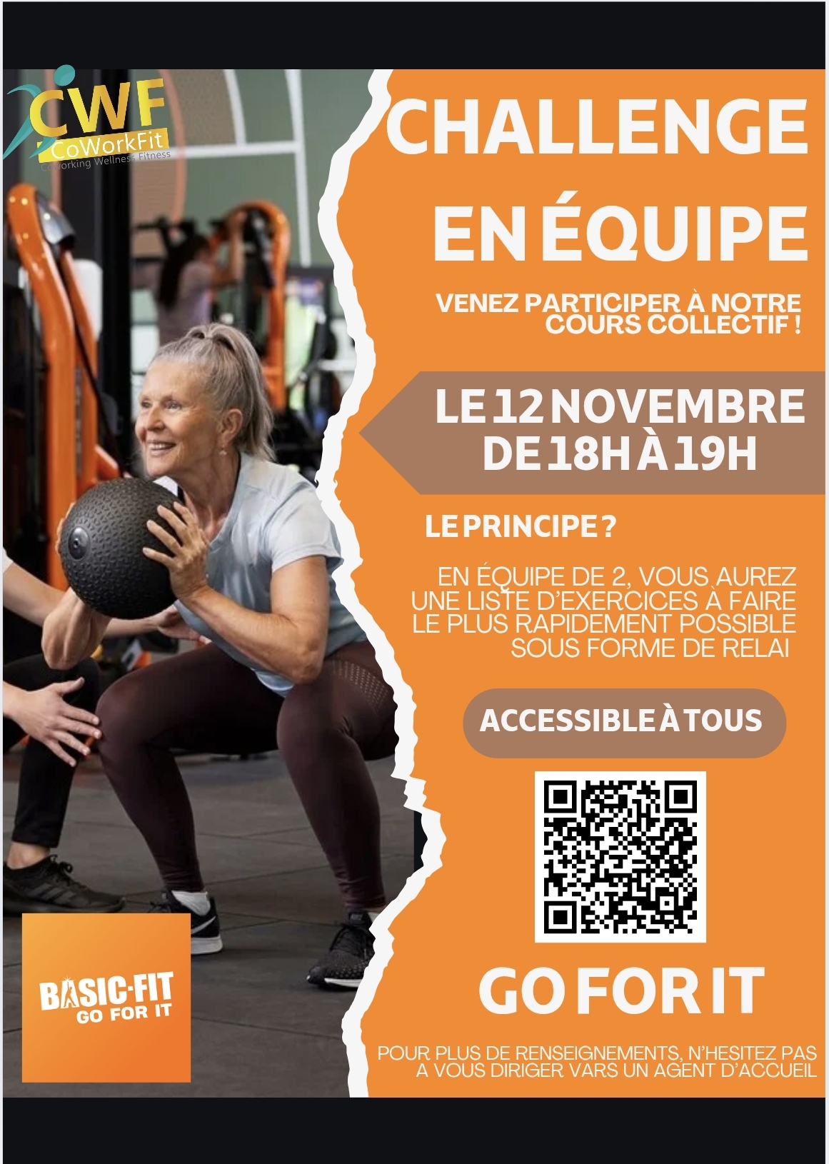 Un cours collectif intense transformé en compétition par équipes de 2. L'objectif est de réaliser un maximum de répétitions d'exercices variés (squats, abdos, pompes, etc.) dans le meilleur temps possible, en se relayant avec son partenaire. Le But : Se dépasser en équipe, battre le chrono, et voir son temps affiché sur le tableau du club ! Bonus : Un Buffet Yanga pour une récupération festive après l'effort. C'est le moment de prouver que votre équipe est la plus rapide !